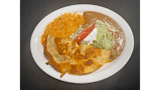 One soft or deep-fried chimichanga, chicken or ground beef topped with cheese sauce. Served with rice, beans, and sour cream salad.